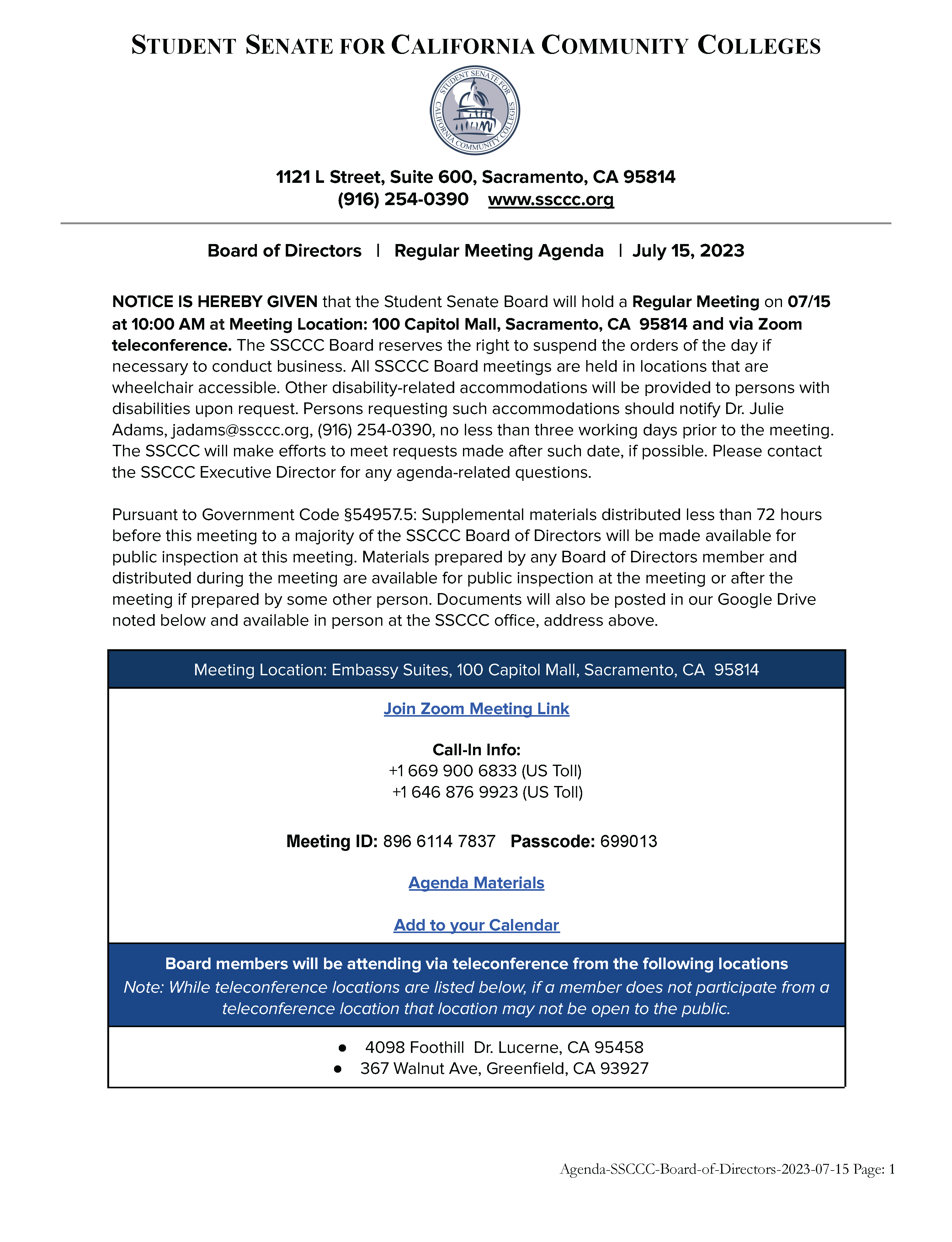 The Board of Directors' agendas and minutes are published for the current year. Please click the date of the meeting on the calendar below to access the agendas and any minutes if available. Below are the meeting dates for the SSCCC Board of Directors Meeting for 2025 - 26. Note: all the meeting dates for the SSCCC Board of Directors are listed on the Website Calendar.